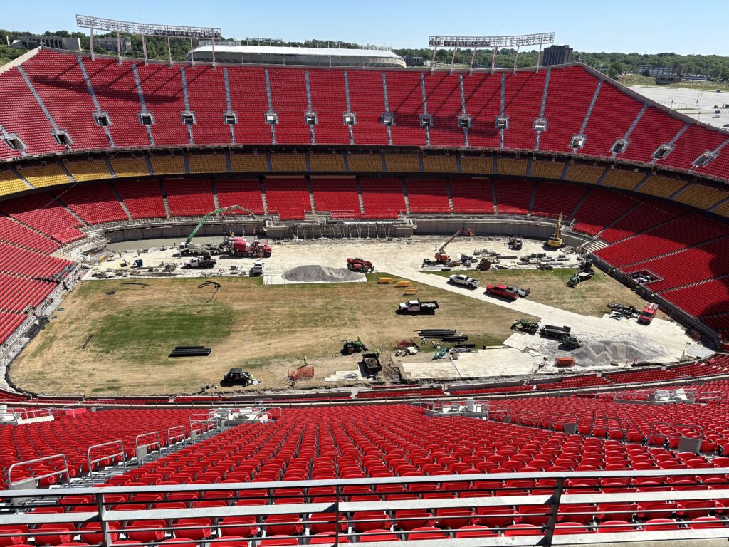 Preparations for the 2026 FIFA World Cup are underway at Arrowhead Stadium in Kansas City, Missouri. Photo dated May 2025. Wikimedia.